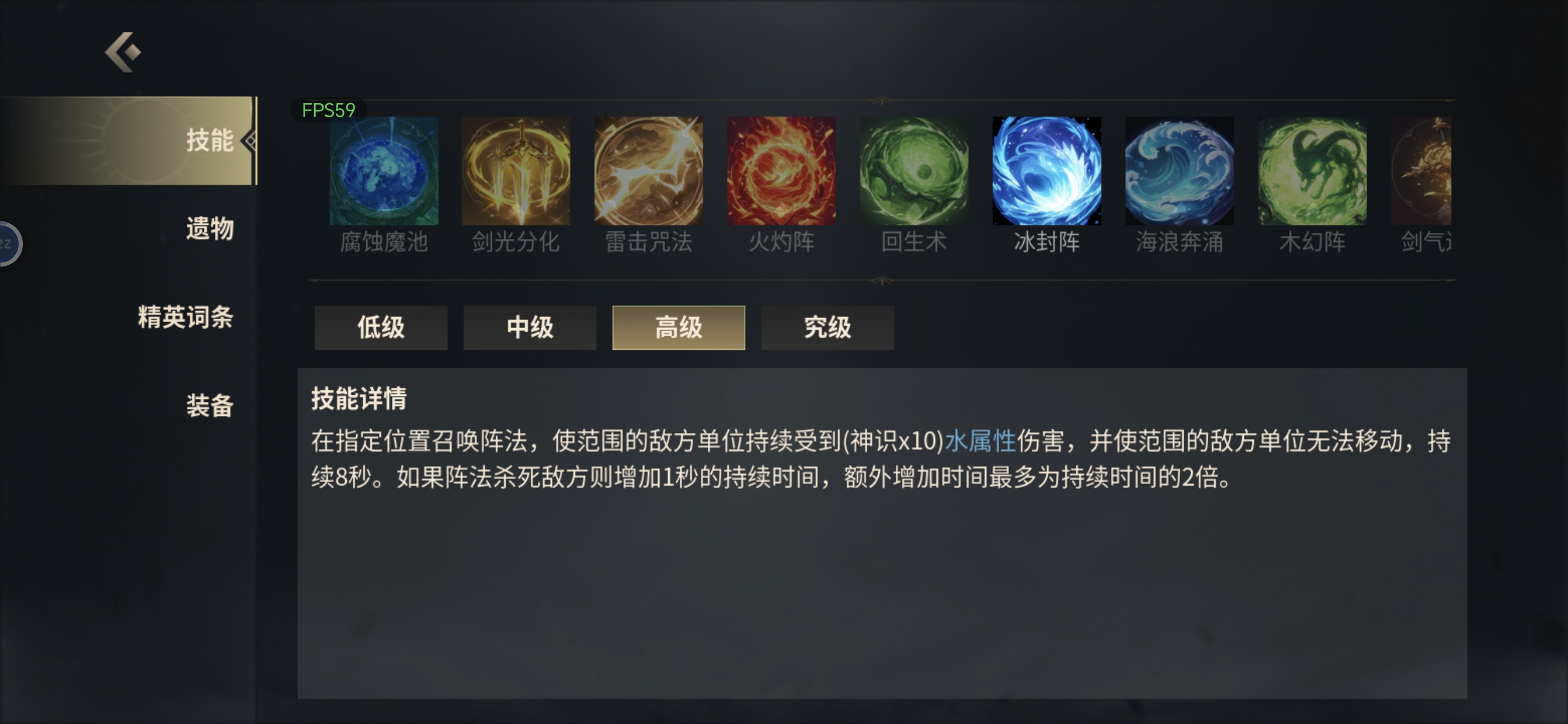 ②前期主动技能用冰封阵和各种群攻技能,被动技能用毒或者点石成金还有魔池都行。后期必要刷毒和会心一击,有条件天赋就开出四技能,被动用个加神识的和会心一击选一个,必带毒,主动用心动和冰封。