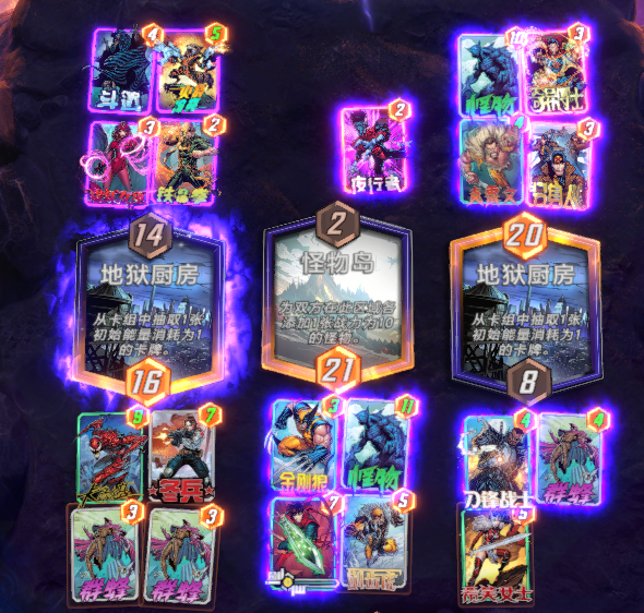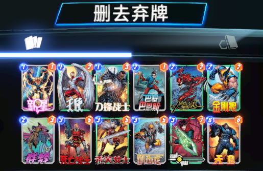 2、通过希芙、剑仙丢弃天启或金刚狼养成战力,丢弃群蜂进行铺场赢下对局。