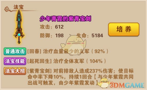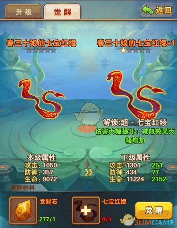 法宝觉醒后可继续强化法宝大招的技能效果,不但能获得战斗增益的加成,还可以进一步提升法宝大招的伤害系数。
