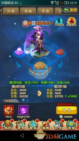 橙3阶0级~3阶1级=8飞升丹+1600将魂