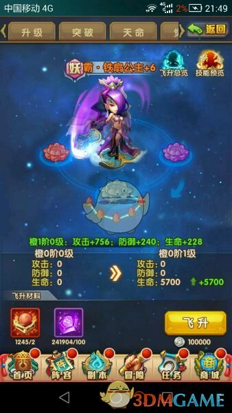 橙2阶0级~2阶1级=6飞升丹+1100将魂