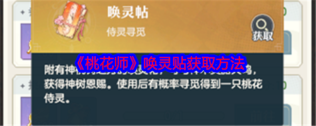 《桃花师》唤灵贴获取方法