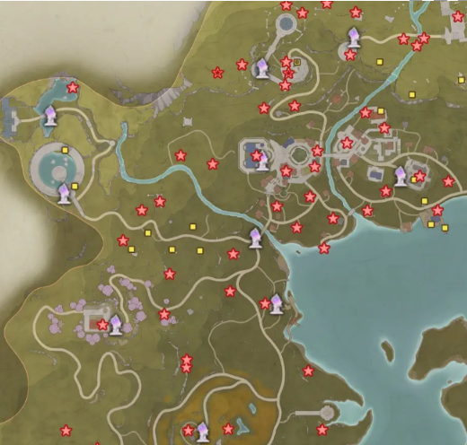 1、红色星星代表的是奇想星、紫色的标志代表的是传送点、黄色方框代表的是箱子、红色菱形代表的是大鸟。