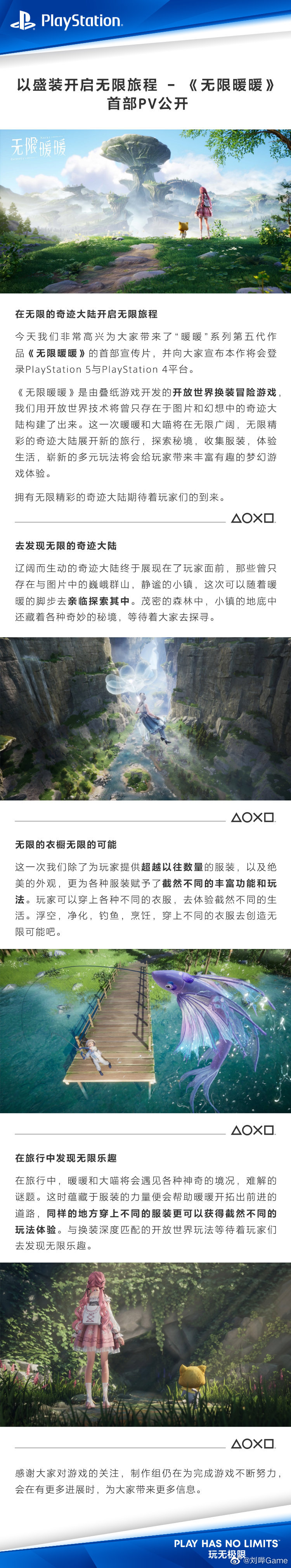叠纸游戏旗下暖暖系列新作,开放世界冒险游戏《无限暖暖》正式公开首部宣传 PV,官方网站同步上线,游戏将登陆PlayStation、PC、iOS、安卓。