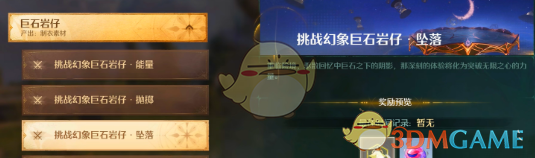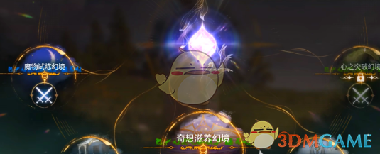 2、与流转之柱交互打开幻境挑战,参与奇想滋养、祝福闪光、魔物试炼幻境挑战获取素材奖励。