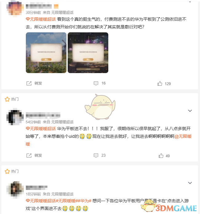 无限暖暖在今天12.5日开启了游戏公测,但是很多玩家表示自己的华为平板、甚至华为电脑无法正常登录游戏。