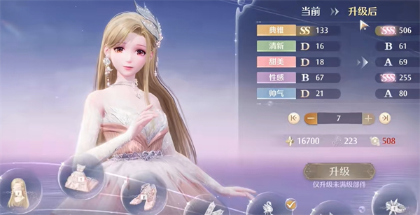 搭配的评分要求比较高,你需要不断的升级装备和闪光获得更高评分才行