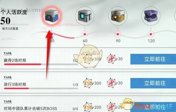 3、接着点击右侧的奖励进行领取,即可获得每日活跃度的奖励物品;