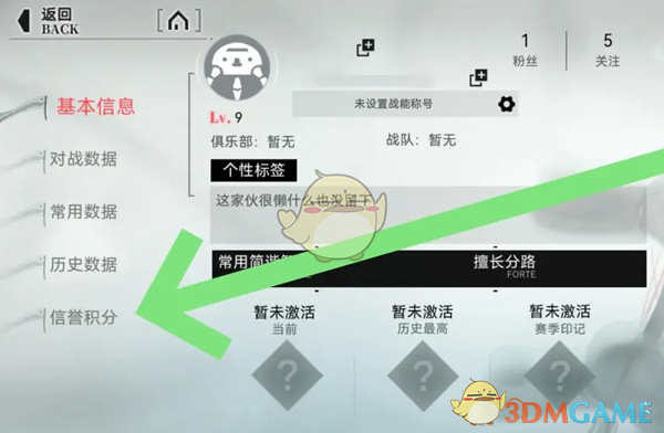 2、然后来到个人信息主页后,点击左侧下方的信誉积分功能前往;