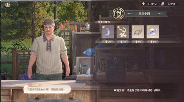 具体位置如下图所示,出售四种鱼类材料发夹泥鳅、蝴蝶结鱼、胡子鲶鱼、厨师帽鱼
