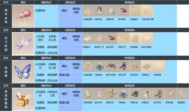 《无限暖暖》昆虫图鉴大全