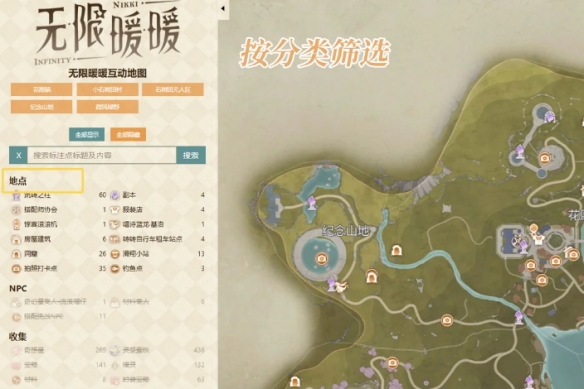 ④一级分类包含“地点”“NPC”“收集”等也可以右键进行快速选择。