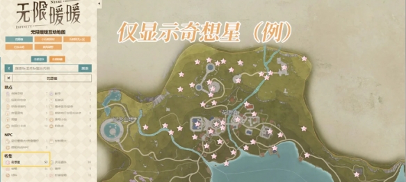 ②只想看“奇想星”的分布情况,不想被别的类别干扰,可以右键点击奇想星就可以获得附图效果。