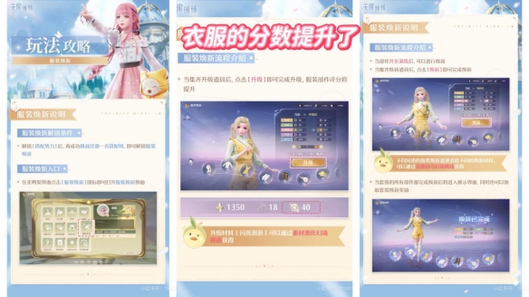 4、所以一定程度上强制你去【服装焕新】升级衣服分数。新人别乱升,这个资源很缺的,最好升抽阁套装,别升级免费主线功能套装!