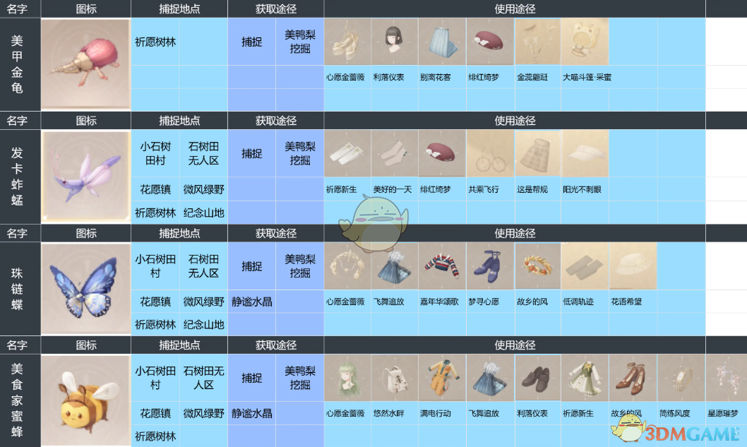 以上就是小编整理带来的《无限暖暖》全昆虫捕捉位置,更多精彩内容,请点击关注易采游戏网,小编将持续为您更新!