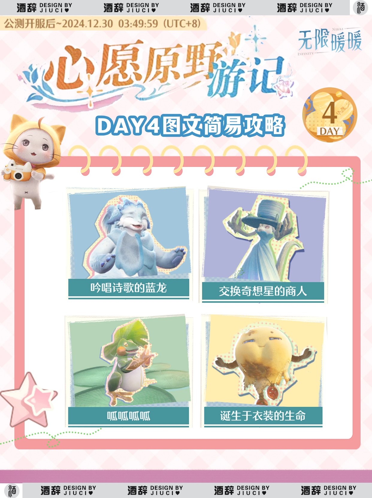 无限暖暖心愿原野第四天怎么玩?无限暖暖开服后心愿原野活动就上线了,第四天吟唱诗歌的蓝龙、呱呱呱呱、交换奇想星的商人、诞生于衣装的生命四个小任务,下面给大家带来了《无限暖暖》心愿原野游记Day4图文攻略,大家需要的一起看看吧!