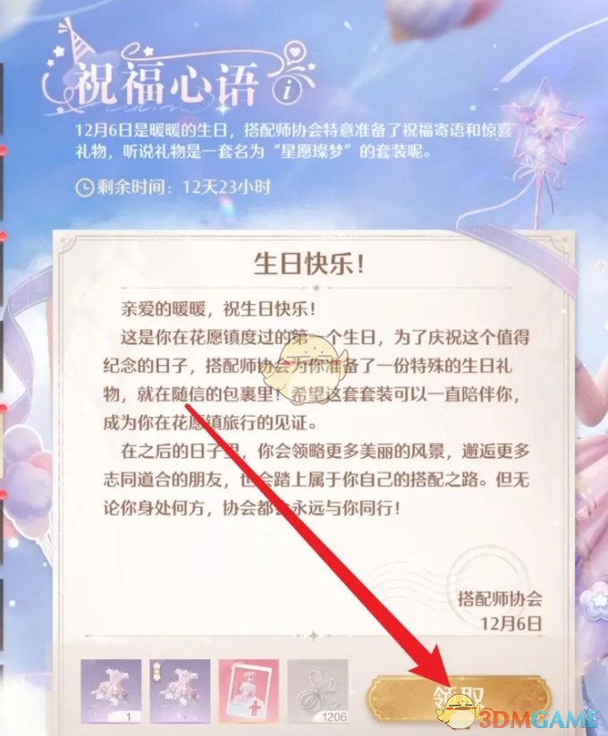 答:在祝福心语页面点击礼物并开启,即可领取暖暖的生日奖励了。