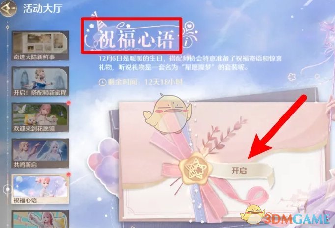 2、接着在活动大厅页面,点击祝福心语-开启按钮;