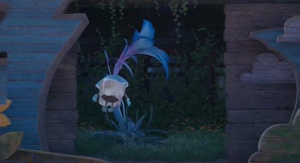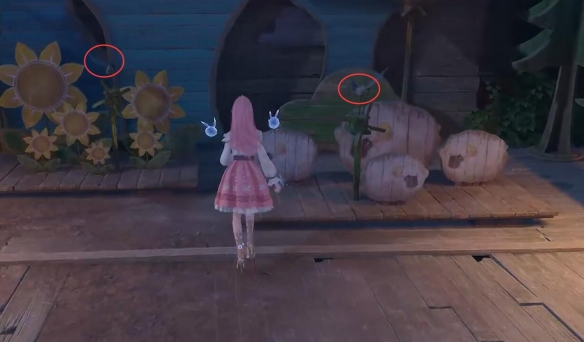 4、按照对话说的的旋律击打旁边的道具,顺序:石树-太阳-黄黄的花-白色的羊;