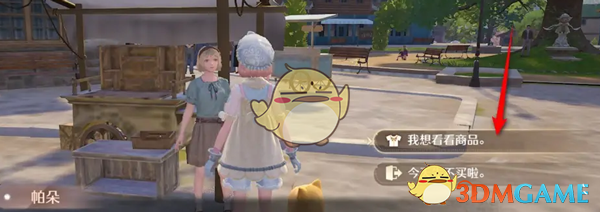 1、首先前往花愿镇,找到帕朵的商店,点击对话;