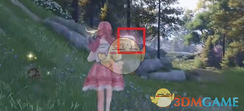 3、来到对面后再继续向右转即可在如下图所示的石坡上看到一个宝箱,但不是我们要找的垂坠旗帜时装宝箱。