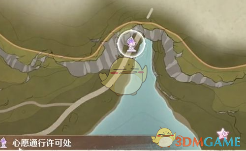 1、打开地图使用流转之柱前往心愿通行许可处传送点位,这是进入祈愿树林的必经之路。