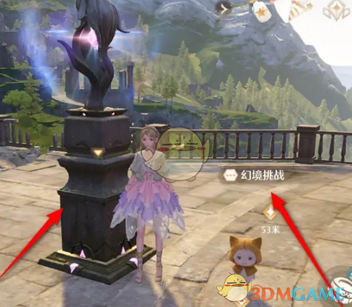 1、首先我们需要进入到游戏中,来到任意一个传送塔下方,点击幻境挑战。