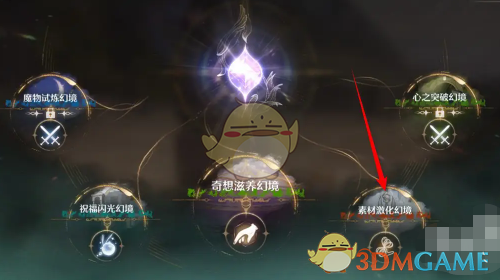 2、在幻境挑战页面选择素材激化幻境,点击前往,即可打开素材激化台。