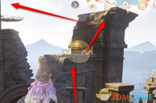 2、来到建筑物的平台上,需要借助边上的石柱跳跃到高处的圆顶建筑上。