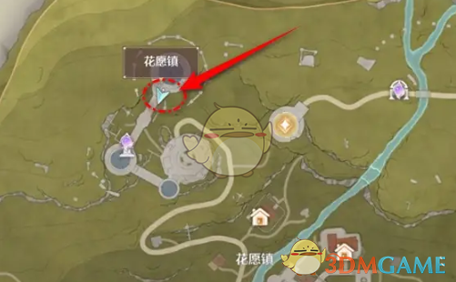 1、首先我们需要进入到游戏中,打开地图选择前往花愿镇上方最高的圆顶建筑。