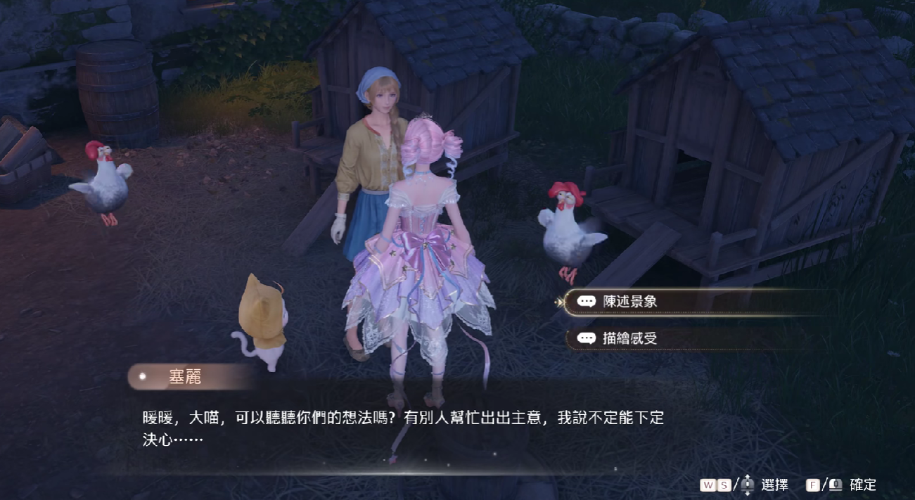 在获取了这三支画帽鸡之后,玩家需要打开照相机功能,对这三只画帽鸡进行拍摄,由于拍摄的动作并未告知给玩家,所以玩家要逐一试探,这三只画帽鸡分别需要玩家摆出微笑、欢呼、激励这三个表情,当玩家完成了上述拍摄后,玩家直接回到小石树田村区域,找到赛琳交付任务即可获取奖励了,不止如此,在完成了画帽鸡任务之后,玩家可以获得画帽鸡的画蛇添足成就。