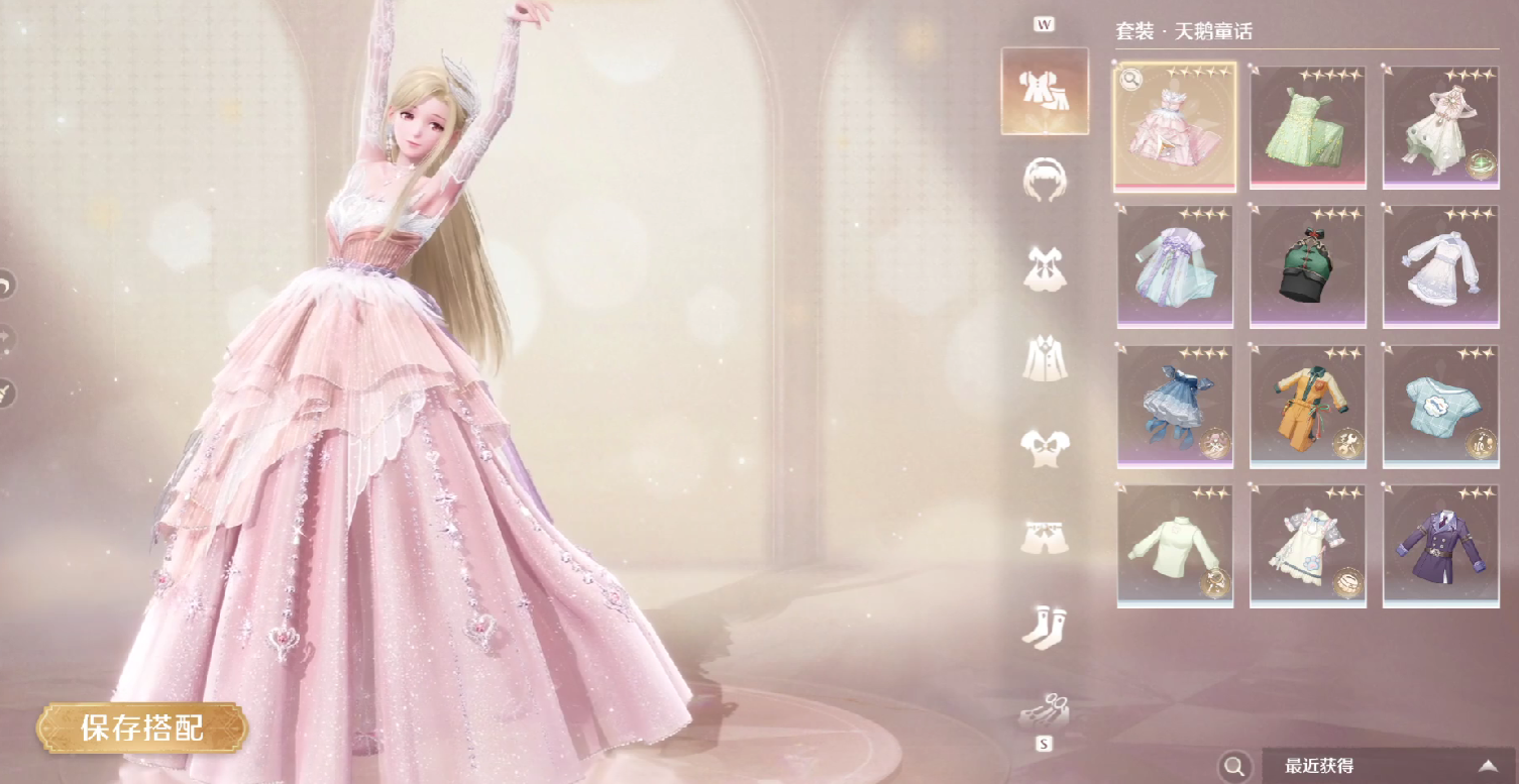游戏的前期,玩家的星光数值并不丰厚,也不能够迅速凑齐这个套装的组建,所以可以直接使用下位套装进行代替,巡星天鹅的下位套装有两个,第一个是天鹅之梦,第二个是天鹅童话,天鹅童话虽然同比为金色属性的套装,但是基础的属性值是不如巡星天鹅的。