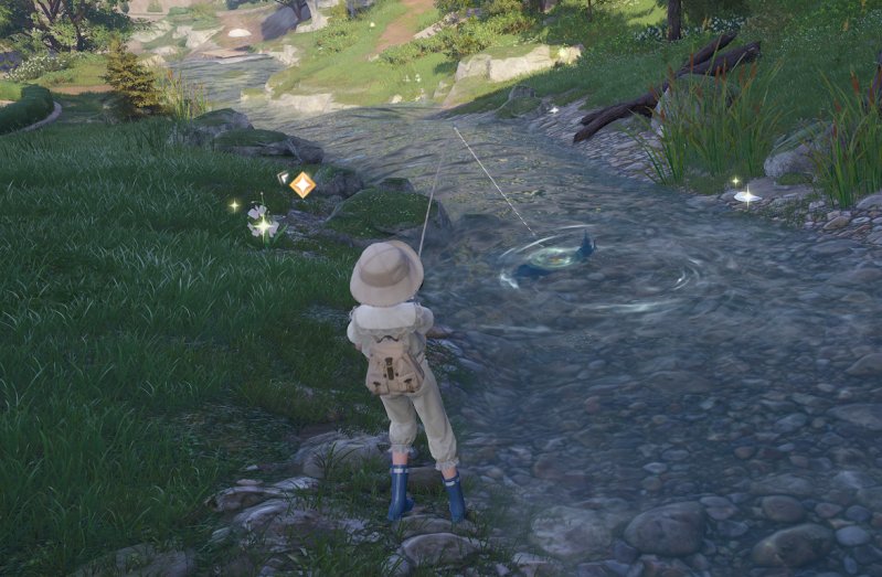 实际操作其实就是,先走到小动物或者小虫子附近的安全距离,不会惊走对方,然后切换对应的功能套装,接下来只要开启冲刺,冲到对方跟前,然后马上按键交互。特别是抓那些小动物和小虫子附身的奇想星,这招尤其好用。