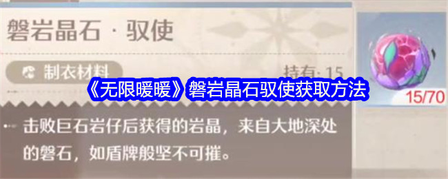 无限暖暖磐岩晶石驭使怎么获得?磐岩晶石驭使是制作金蔷薇套装的材料,击败巨石岩仔后获得的岩晶,来自大地深处的磐石,如盾牌般坚不可摧。下面是小编给大家带来的《无限暖暖》磐岩晶石驭使获取方法,感兴趣的小伙伴们一起来看看吧。