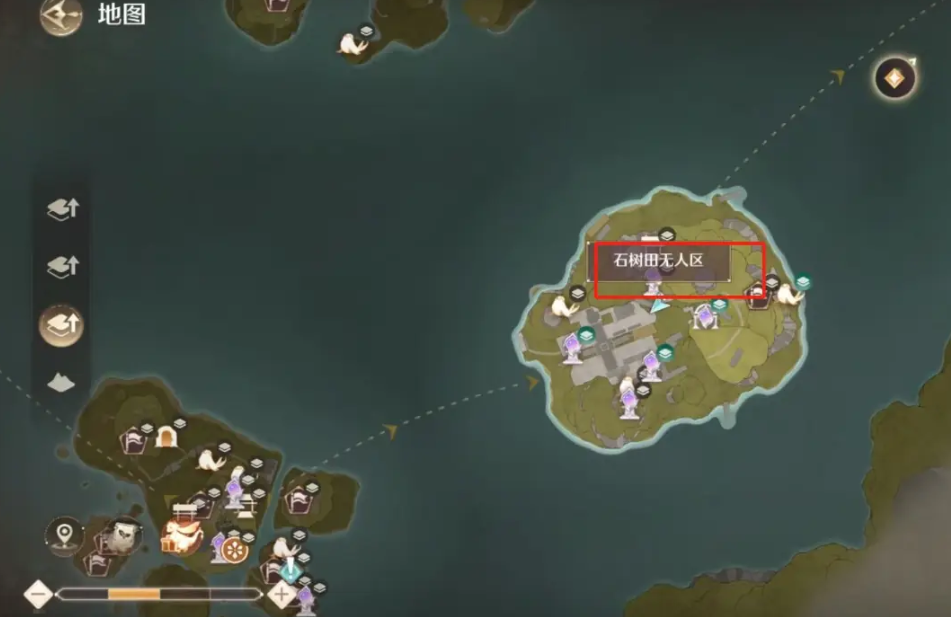 1、打开无限暖暖游戏,在石树田无人区点击箭头位置。