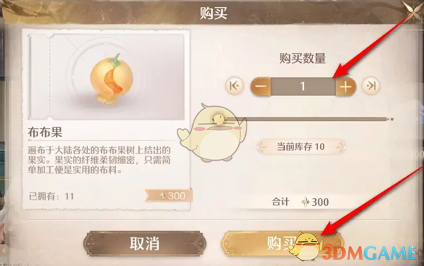 4、在购买的时候,选择购买数量并点击购买,一个布布果300噗灵;