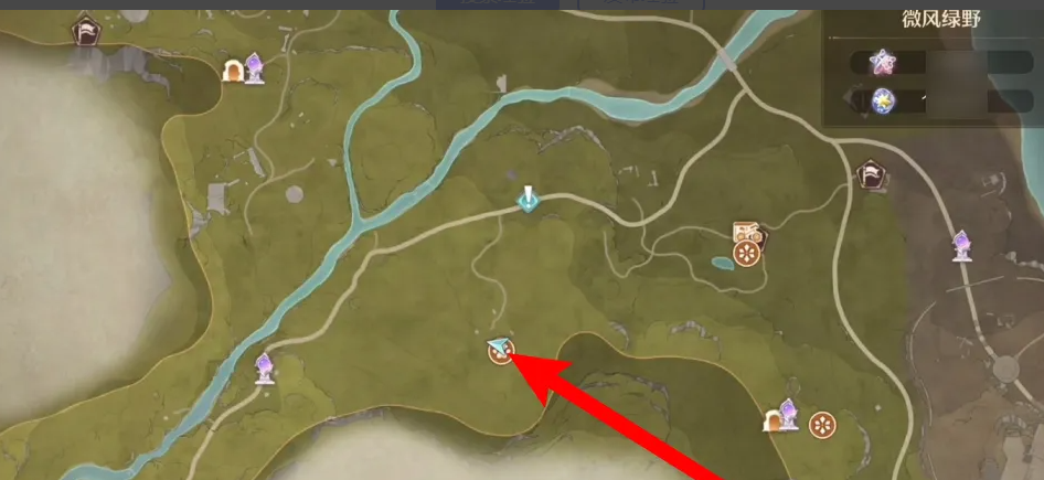 1、打开无限暖暖游戏,在微风绿野区域点击前往箭头位置。
