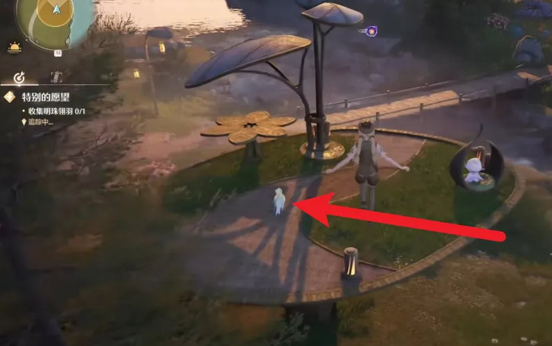 1、打开无限暖暖游戏,在祈愿树林找到珠冠鹦鹉。