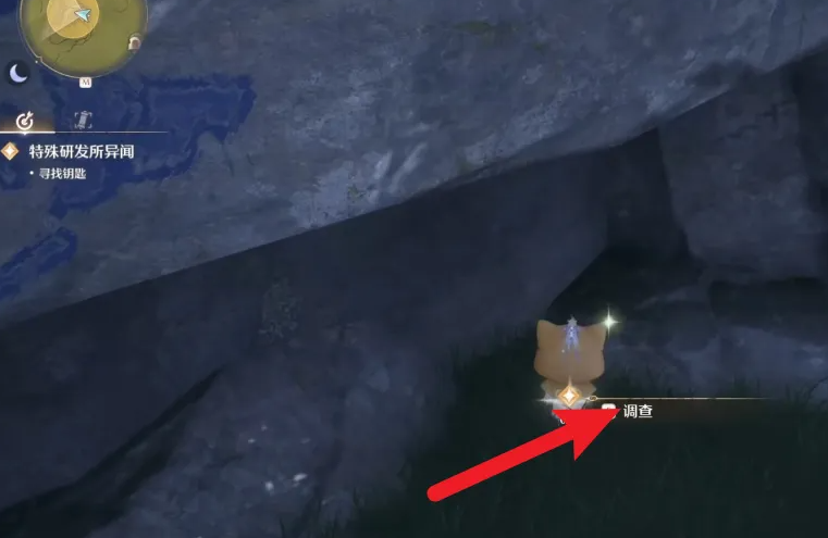 2、咨询完三个指引后,在大石头底下点击调查。
