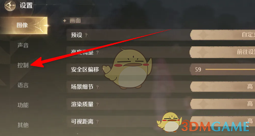 2、进入到设置页面,在左侧导航栏,点击控制选项即可看到关于灵敏度的设置。