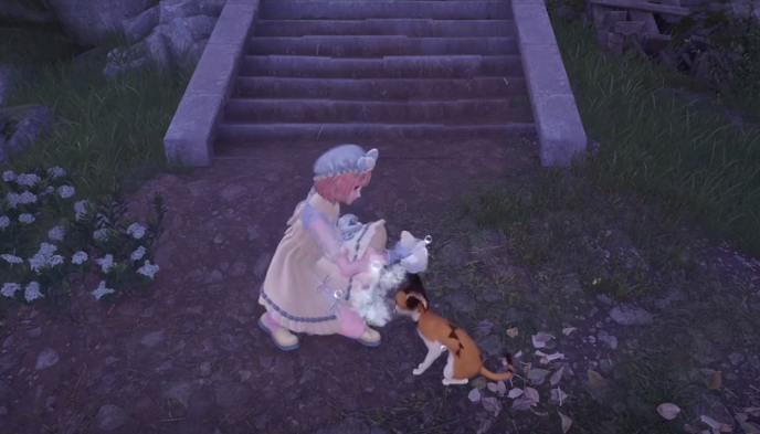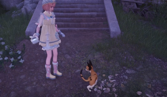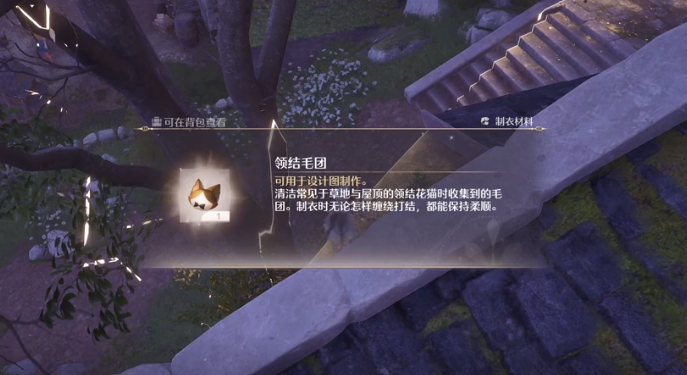 除了这一个小镇之外,小石树田村、石树田无人区这两个地方也有出现的几率,玩家可以选择去互动,例如在清洁之后,马上就可以得到领结毛团。这就是一个非常重要的特殊材料,可以用来去制作一些服装,例如可以制作别离花客服装,还有梦寻心愿服装。