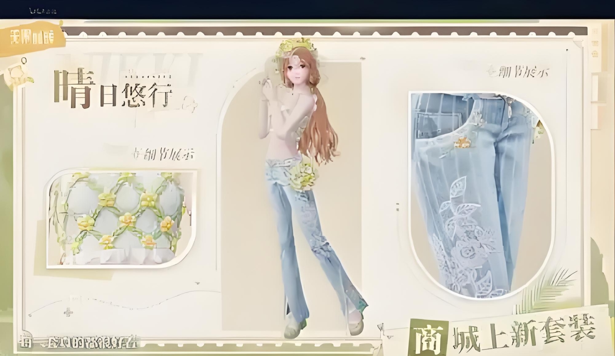看了获取方法后,再来了解下套装的具体情况,晴日悠行是一套3星服装,别看它的星级不是特别的高,可是这套衣服穿上却相当的好看,套装的上衣是一件碎花小吊带,穿上小吊带后会把纤细的小蛮腰给全部露出来。