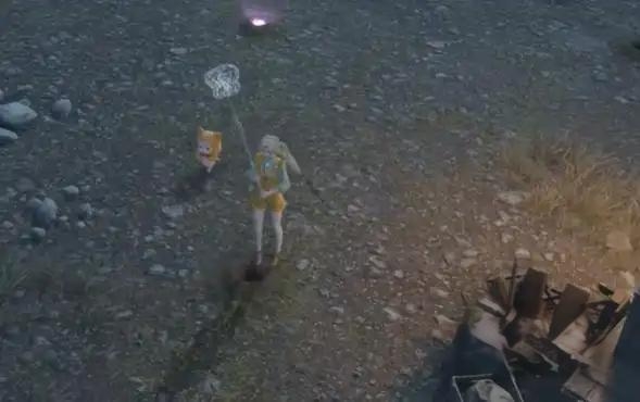 把所有的道具都收到手机,继续向村里走,村里有一口古井,古井一旁的土地上有着不少打蚯蚓,大家要把蚯蚓都抓到,这时就要换上能捕虫的换装,蚯蚓捉的差不多了以后,在观察下古井旁边的气流,这些气流会向村里最高的地方流去,跟着气流走向最高的建筑物处,会看到建筑物遇到气流会散发出光点,光点也能拾取的。