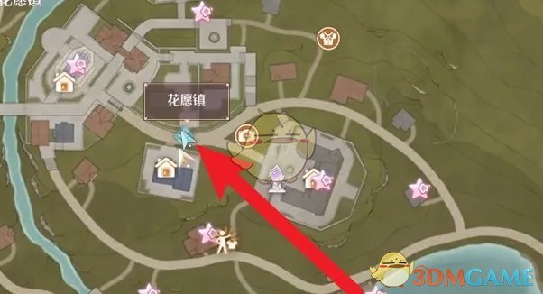 1、首先我们打开游戏地图,选择花愿镇传送前往;