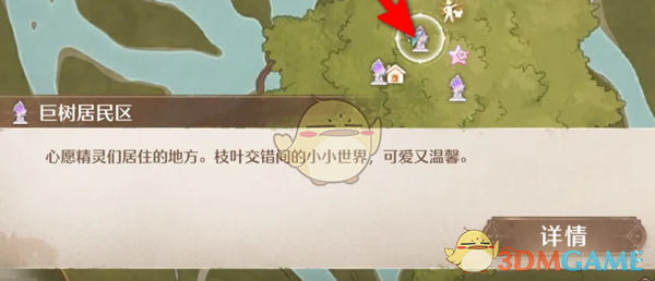 1、首先我们打开地图,选祈愿树林,传送到巨树居民区;