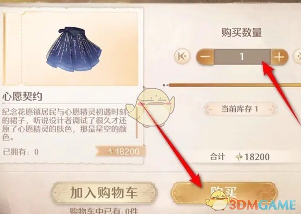 4、选择购买数量后,消耗18200噗灵即可购买获得心愿契约下装短裙;