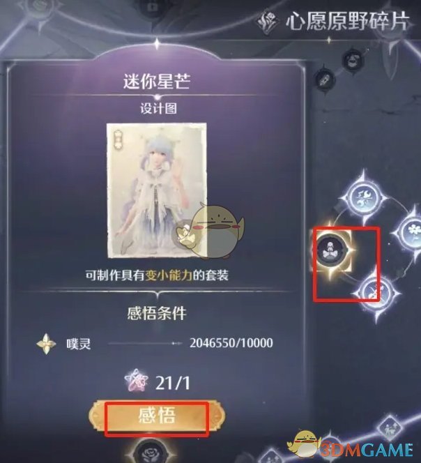 3、满足感悟条件和所需材料后,就可以获得迷你星芒设计图的奖励了;