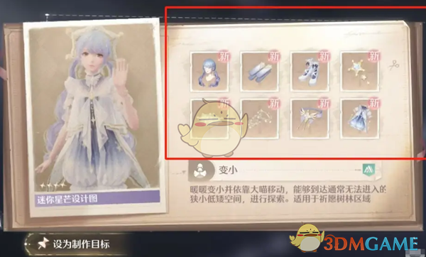 在无限暖暖游戏内暖暖是有变小能力的,这个能力是通过指定套装来实现的,在获取迷你星芒设计图后,制作套装就可以解锁变小能力了,不过很多玩家对这个套装的设计图获取方法并不是太清楚,下面就让小编给大家带来《无限暖暖》迷你星芒设计图获得方法,感兴趣的继续往下看看吧。