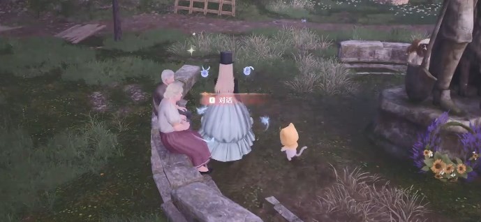 3、对话完毕之后回到雕像前再等待一次,然后与新出来的一对老夫妻npc对话。