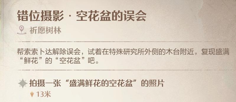 无限暖暖错位摄影空花盆的误会怎么拍照?无限暖暖错位摄影空花盆的误会任务需要拍摄盛满花的空花盆,很多玩家不知道怎么做,下面是小编给大家带来的《无限暖暖》错位摄影空花盆的误会拍照技巧,感兴趣的小伙伴们一起来看看吧。